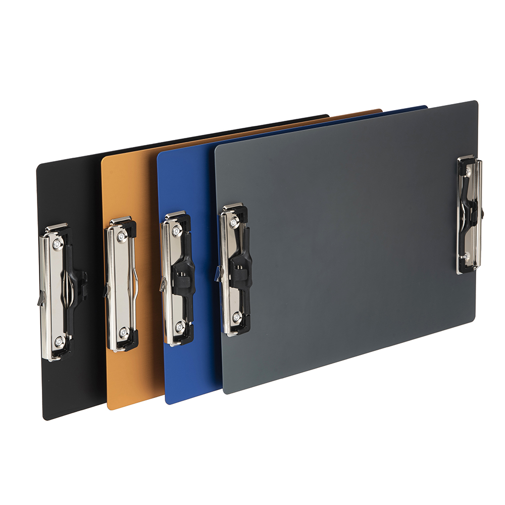 Discover our A4 aluminum metal clipboard, featuring a sturdy design, double clips, a pen holder, and a hangable option—perfect for all your writing needs!